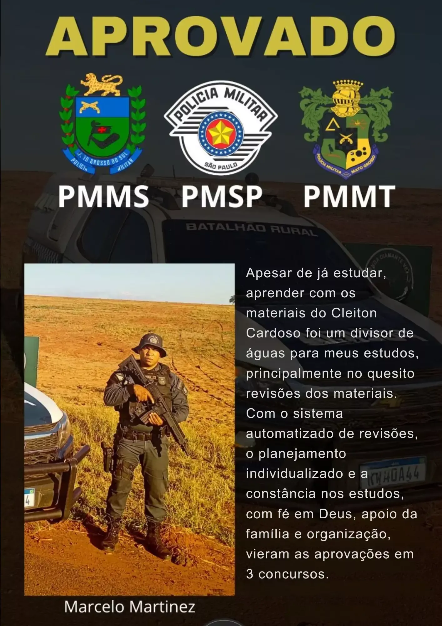 Método usado pelo Prof. Cleiton Cardoso em 13 aprovações em concursos públicos.